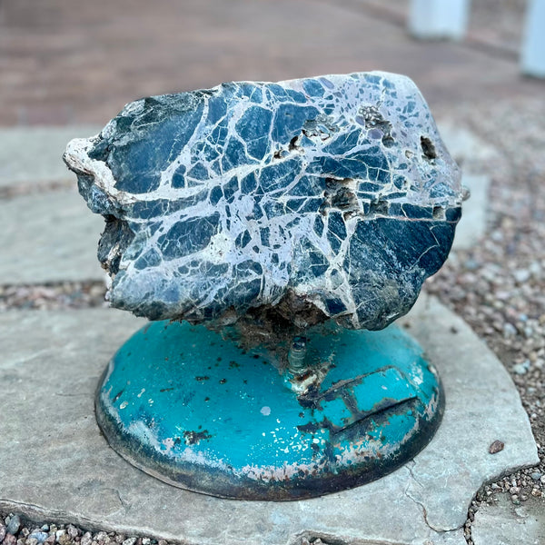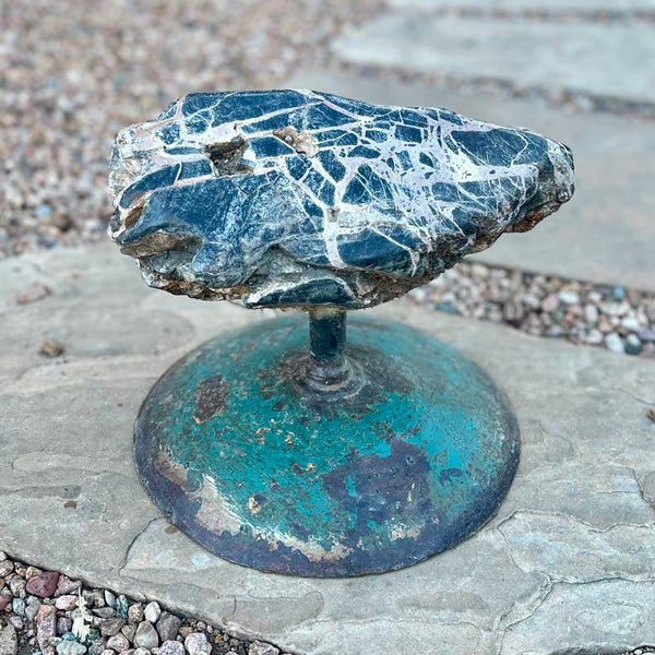 Hand-carved and polished, these functional stone furniture pieces aren't just great to look at, they are comfortable! Gerald travels many miles down the Sea of Cortez coastline to find these special rocks for his chairs. These beautiful stones are a combination of granite and marble with veins of onyx. The steel frames are formed by hand and custom shaped to fit each unique stone.